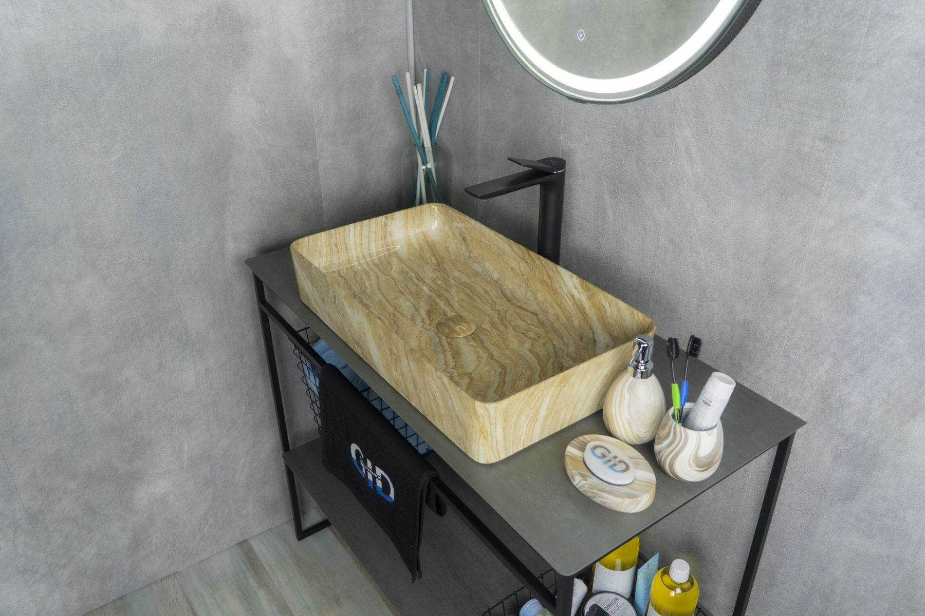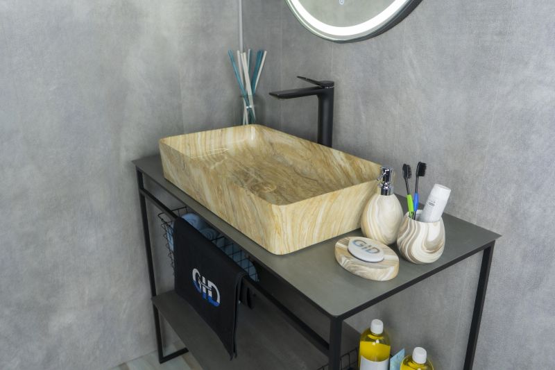 Серия Geometrico с прямоугольной формой: стиль и практичность с испанским качеством и европейскими стандартами. Раковина накладная GiD Mnc595— элегантная модель прямоугольной формы, изготовленная из высококачественной керамики с глянцевой поверхностью, создающей эффект натурального камня. Её строгий и современный дизайн идеально подойдёт для ванных комнат в минималистичном или современном стиле. Модель не имеет отверстия под смеситель, что позволяет использовать различные варианты настенных или встраиваемых смесителей, предоставляя свободу в дизайне интерьера. Раковина предназначена для установки на столешницу, подчёркивая стильный и функциональный интерьер ванной комнаты.
