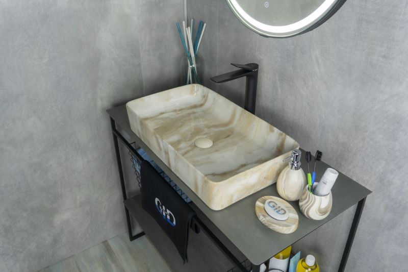 Серия Geometrico с прямоугольной формой: стиль и практичность с испанским качеством и европейскими стандартами. Раковина накладная GiD Mnc596— элегантная модель прямоугольной формы, изготовленная из высококачественной керамики с глянцевой поверхностью, создающей эффект натурального камня. Её строгий и современный дизайн идеально подойдёт для ванных комнат в минималистичном или современном стиле. Модель не имеет отверстия под смеситель, что позволяет использовать различные варианты настенных или встраиваемых смесителей, предоставляя свободу в дизайне интерьера. Раковина предназначена для установки на столешницу, подчёркивая стильный и функциональный интерьер ванной комнаты.