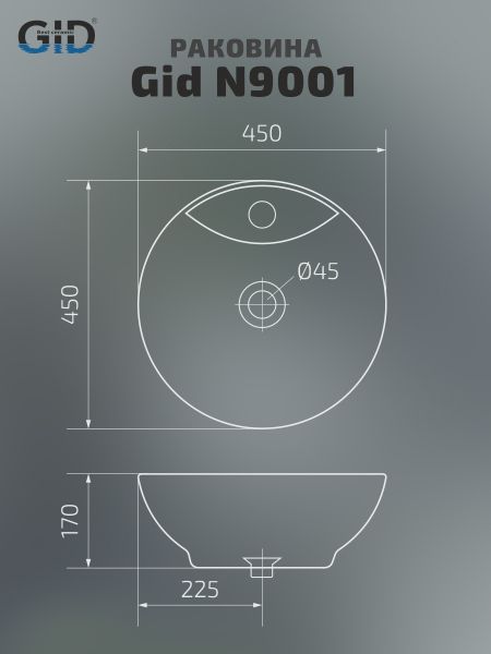 Раковина Gid N9001 51101 накладная белая 45x45x17 купить