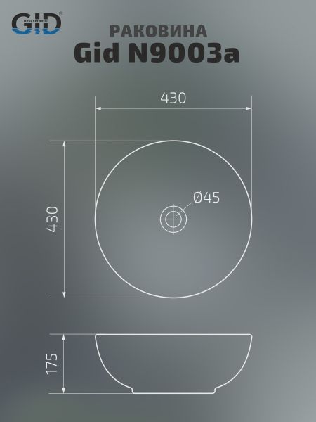 Раковина Gid N9003a 51103 накладная белая 43x43x17.5 купить