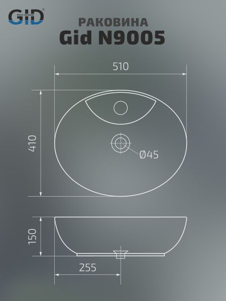 Раковина Gid N9005 51206 накладная белая 51x41x15 купить