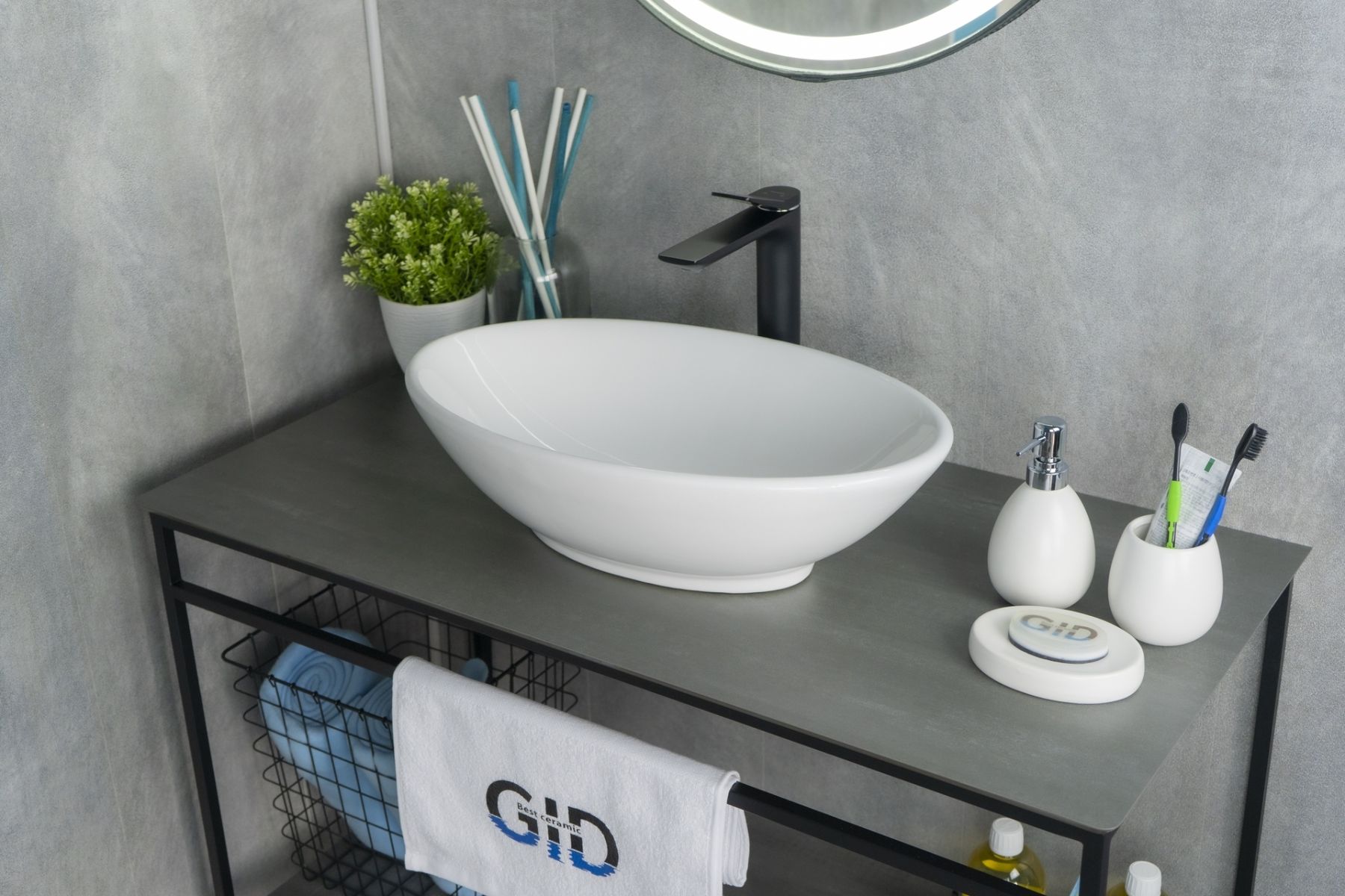 Серия Lago овальной формы — это испанское качество, соответствующее современным европейским требованиям. Накладная раковина GiD N9021 — сочетание элегантного дизайна и практичности для вашей ванной комнаты. Изготовлена из мелкопористой керамики с белым глянцевым покрытием, она придаст интерьеру свежесть и утонченность. Овальная форма обеспечивает оптимальное пространство для комфортного использования. Отсутствие отверстия под смеситель подчеркивает минималистичный стиль, а накладной способ монтажа на столешницу облегчает установку и позволяет создать современный облик ванной комнаты.