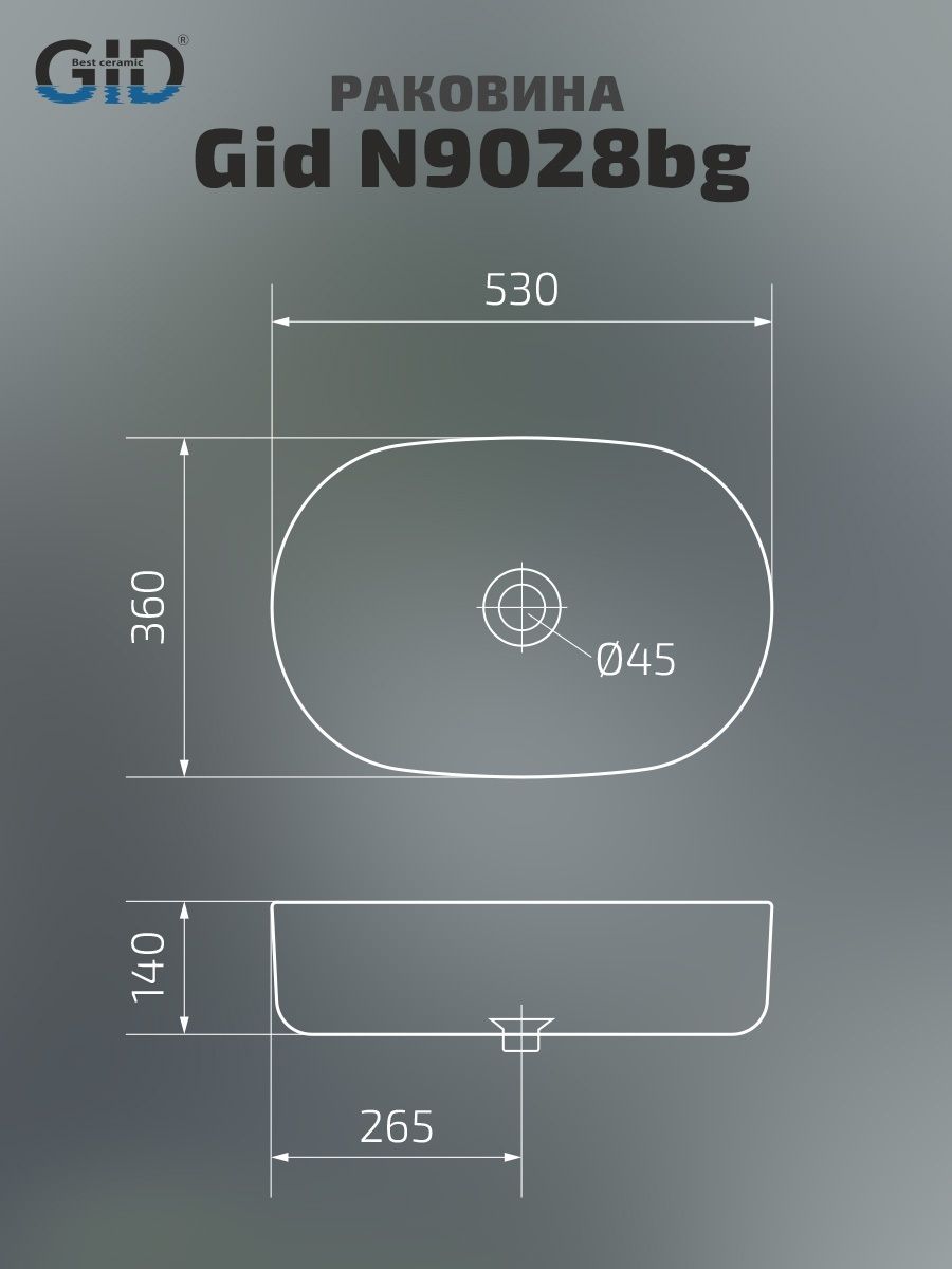 Раковина Gid N9028bg 53380 накладная черная графит 53x36x14 купить