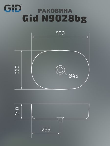Раковина Gid N9028bg 53380 накладная черная графит 53x36x14