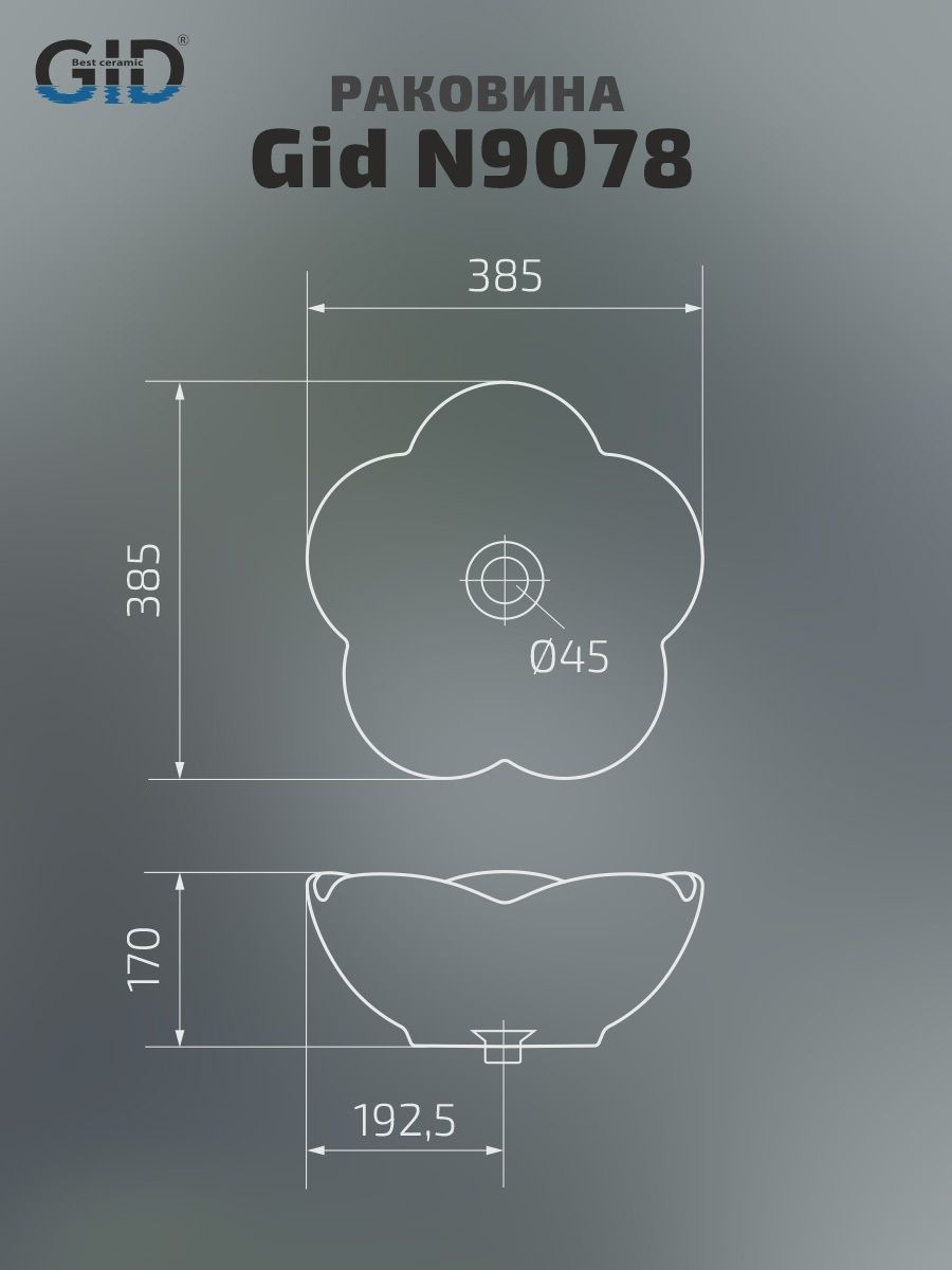 Раковина Gid N9078 51162 накладная белая 38.5x38.5x17 купить