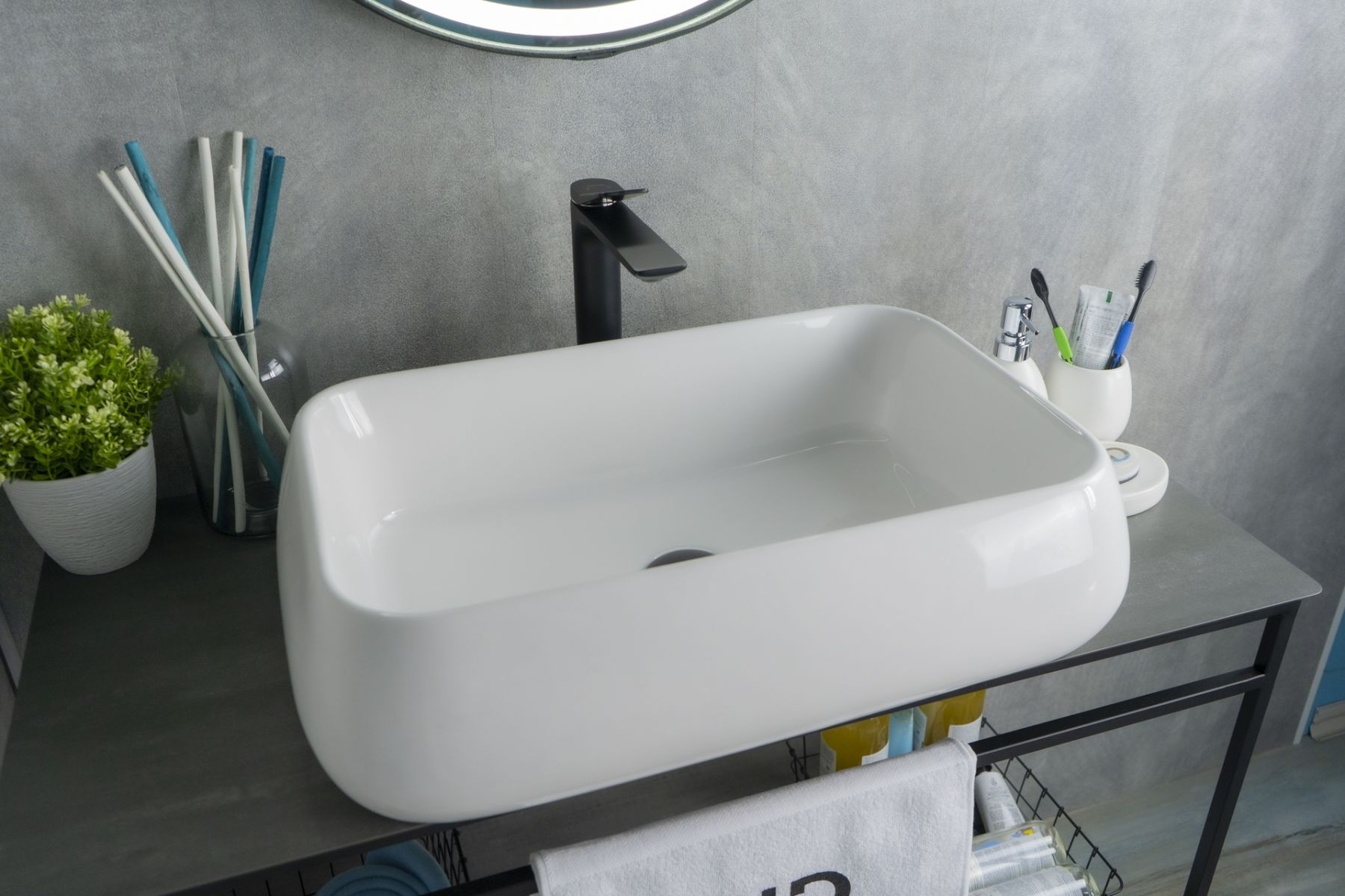 Серия Geometrico с прямоугольной формой: стиль и практичность с испанским качеством и европейскими стандартами. Накладная раковина GiD N9239 — сочетание элегантного дизайна и практичности для вашей ванной комнаты. Изготовлена из мелкопористой керамики с белым глянцевым покрытием, она придаст интерьеру свежесть и утонченность. Прямоугольная форма обеспечивает оптимальное пространство для комфортного использования. Отсутствие отверстия под смеситель подчеркивает минималистичный стиль, а накладной способ монтажа на столешницу облегчает установку и позволяет создать современный облик ванной комнаты.