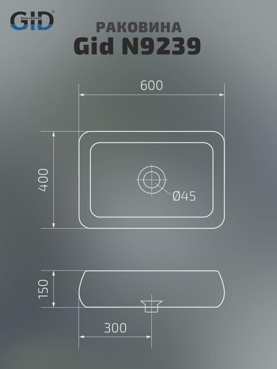 Раковина Gid N9239 51134 накладная белая 60x40x15 купить