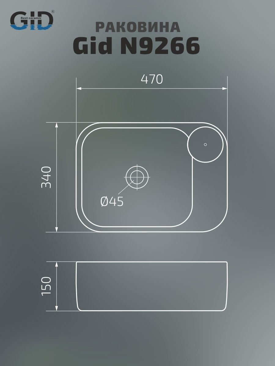 Раковина Gid N9266 51173 накладная белая 47x34x15 купить