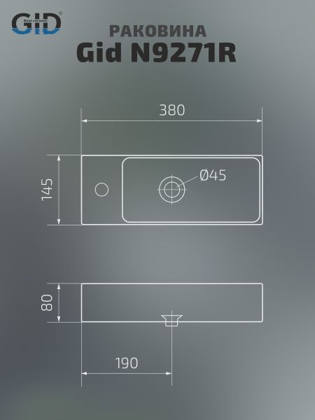 Раковина Gid N9271R 61128R подвесная белая 38x14.5x8 купить
