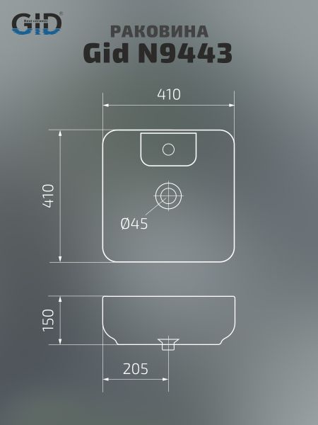 Раковина Gid N9443 51154 накладная белая 41x41x15 купить