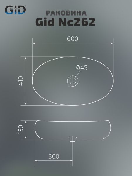 Раковина Gid Nc262 52201 накладная белая / хром 60x41x15 купить
