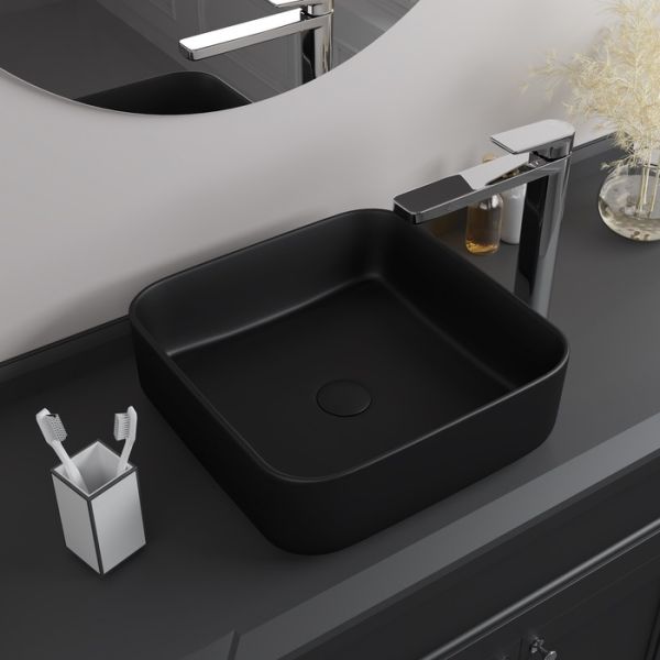 Плавные мягкие линии и квадратная чаша большой глубины делают накладной умывальник Bridge удивительно стильным и удобным в использовании. С ним так просто обновить интерьер ванной комнаты, не прибегая к масштабному ремонту. Создавайте стильные индивидуальные решения, комбинируя черный Bridge со смесителями, столешницами и тумбами любых подходящих форм и цветов. • Накладной умывальник IDDIS® не требует сложного монтажа. • Специальная глазурованная поверхность умывальника не задерживает загрязнения и неприятные запахи. Она экологически безопасна и сохранит насыщенность цвета в течение всего срока службы. • Умывальник IDDIS® прост в уходе – достаточно обычного мыльного раствора или бескислотного (pH 6–8 ед.) чистящего средства.
