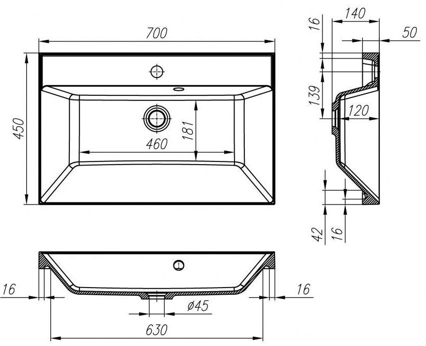 Раковина из искусственного мрамора Art&Max 70см AM-LAV-700-MR-FА купить