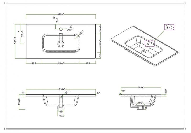 Раковина керамическая BelBagno 80см Etna BB800/390ETL