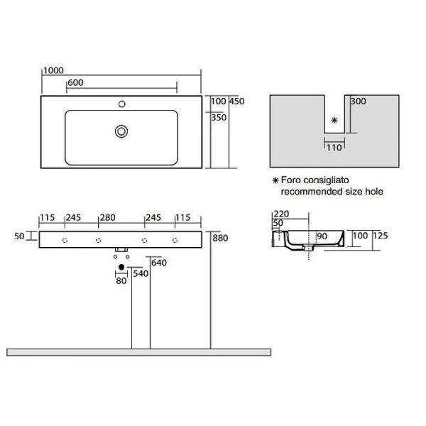Раковина Kerasan Cento 355001*1 Белая 100 смХарактеристики:Цвет: белый