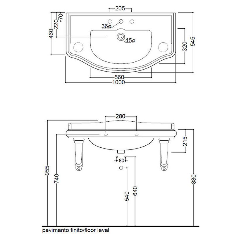 Раковина Kerasan Retro 105001*1 белая 100 см
