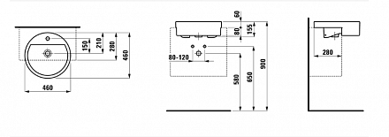 Living City 1676х46х869см, полувстраиваемая раковина, переливной канал остеклен, арт. 8.1343.1.000.104.1, Laufen