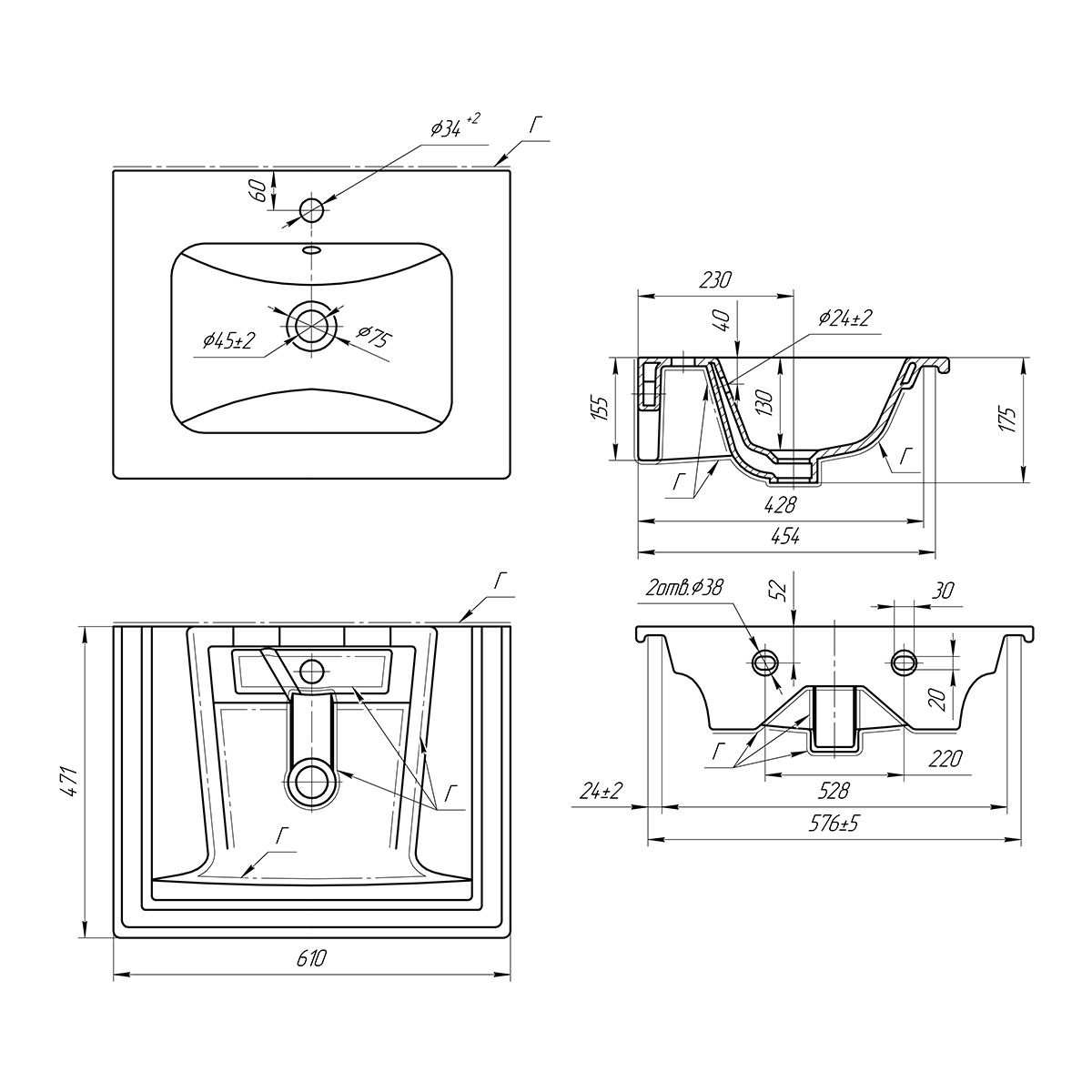 Раковина Lemark Эйфория 640344 белая 60 смОсновные особенности:
