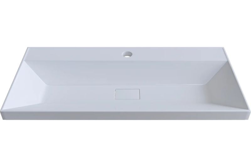Раковина встраивается на мебель, в столешницу и на подстолье. Верхний слой представляет собой декоративно-защитное покрытие - импортный сантехнический гелькоут. Донный клапан отсутствует. В комплектацию входит декоративная накладка на слив.