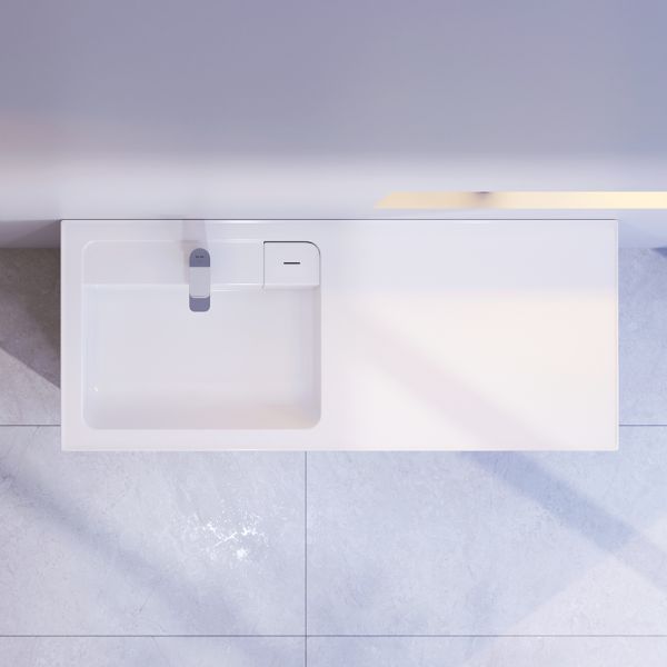Долгожданное расширение в мебели X-Joy. Самое оптимальное и функциональное решение для организации пространства ванной комнаты с учетом размещения в ней стиральной машины. Подходит для интеграции с узкими стиральными машинами (глубиной от 32 до 45 см).Дизайнерская раковина из литьевого мрамора белоснежного цвета с бортиком, скрытым сливом и съемной мыльницей. Раковина оснащена просторной столешницей, на которой можно разместить косметические и гигиенические средства. Столешница защищает стиральную машину от повреждений и механических воздействий.Раковина совместима с тумбой X-Joy - M85AFSX0402WG