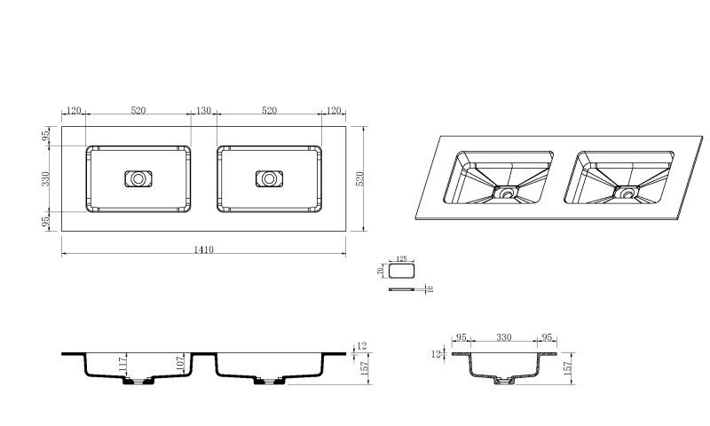 - Габариты (ШхВхГ): 1410х157х520 мм..