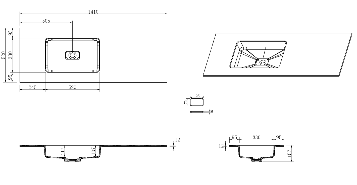 • Габариты (ШхВхГ): 1410х157х520 мм..