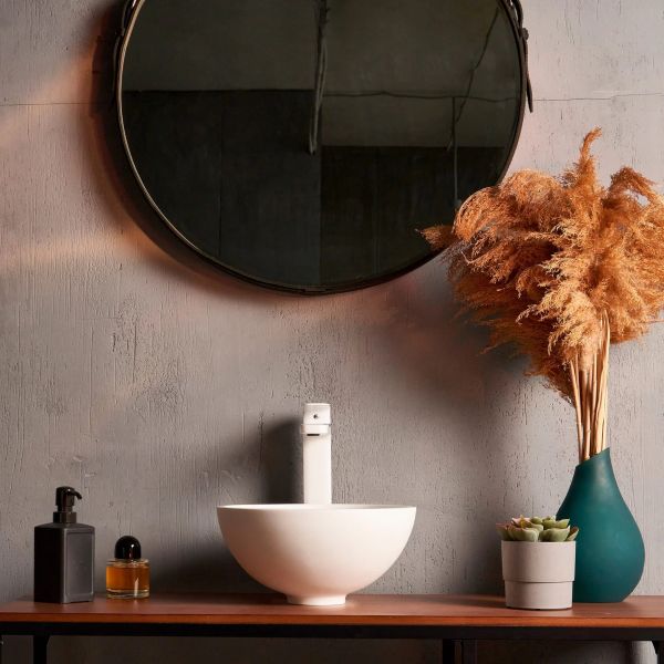 Раковина из искусственного камня для ванной комнаты, представитель линейки бестселлеров Montebianco Nemi / Nemi Due / Nemi 390. Круглой формы, оптимальной глубины – вода не выплескивается и не разбрызгивается. Имеет самый компактный диаметр чаши среди всех раковин круглой формы Montebianco – идеальна для установки в небольших помещениях или «проходных» зонах. Отличный выбор для корпоративных покупателей/коммерческих помещений. Раковина Montebianco Nemi Due устанавливается как на поверхность столешницы или мебели накладным способом, так и бесшовно вклеивается в столешницу любого цвета, создавая цельную поверхность. Уход за раковиной из искусственного камня прост: в большинстве случаев достаточно протереть поверхность влажной губкой с чистящим средством. Материал не впитывает влагу, не порист, непроницаем для плесени, бактерий и грибков. Nemi Due имеет матовую, бархатистую поверхность. Полимерный материал принимает температуру окружающей среды, поэтому в жилом пространстве данная модель раковины всегда будет приятной на ощупь. Отличие Nemi Due от Nemi и Nemi Tre – в размерах: Nemi Due имеет самую компактную чашу, при этом оптимальной глубины.
