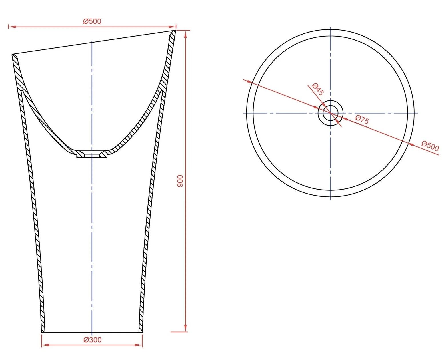 ДxШxВ: 500x500x900 мм