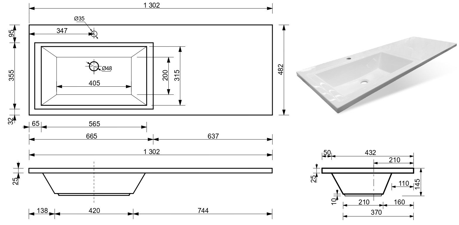 Раковина над стиральной машиной Эстет Даллас ФР-00002166 Л 130см белый
