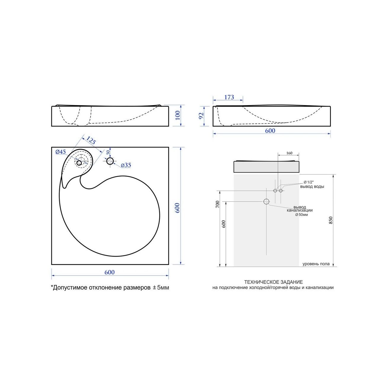 • Отверстия под смеситель: