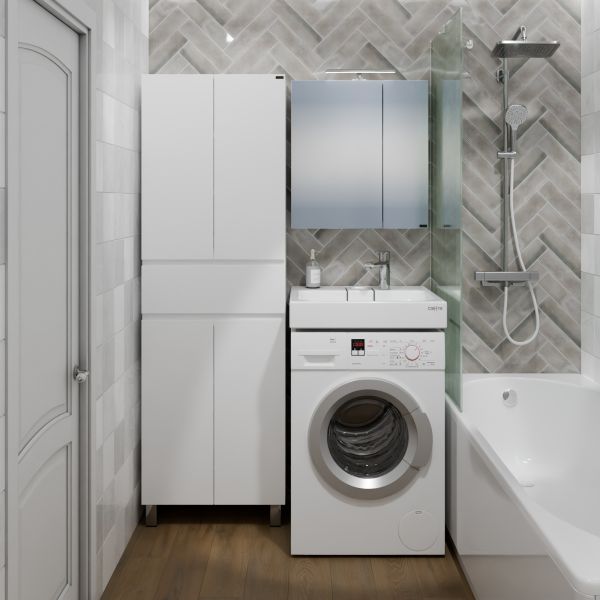 Раковина установленная над стиральной машиной является одним из самых оптимальных способов экономии полезного пространства в ванной комнате. Установка раковин над стиральной машиной является актуальной для небольших квартир в современных новостройках, апартаментах, студиях. Огромным плюсом также является то, что нет необходимости делать дополнительные коммуникации. Слив воды расположен в задней части умывальника и расположение сифона не мешает установке стиральной машины. Таким образом, все коммуникации собраны в одном месте.