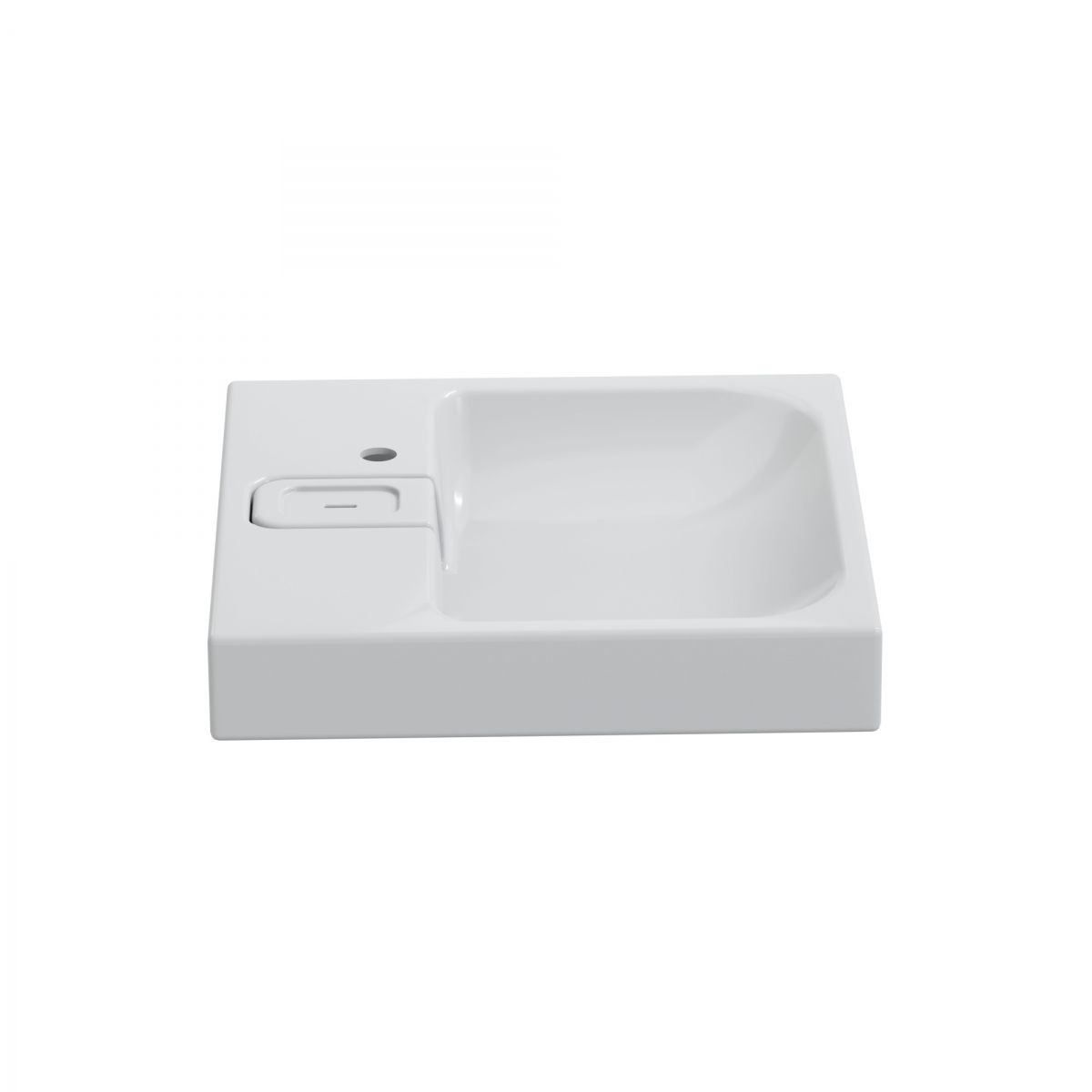 Чаша раковины имеет прямоугольную форму. На широкой задней поверхности раковины очень удобно размещать гигиенические принадлежности.