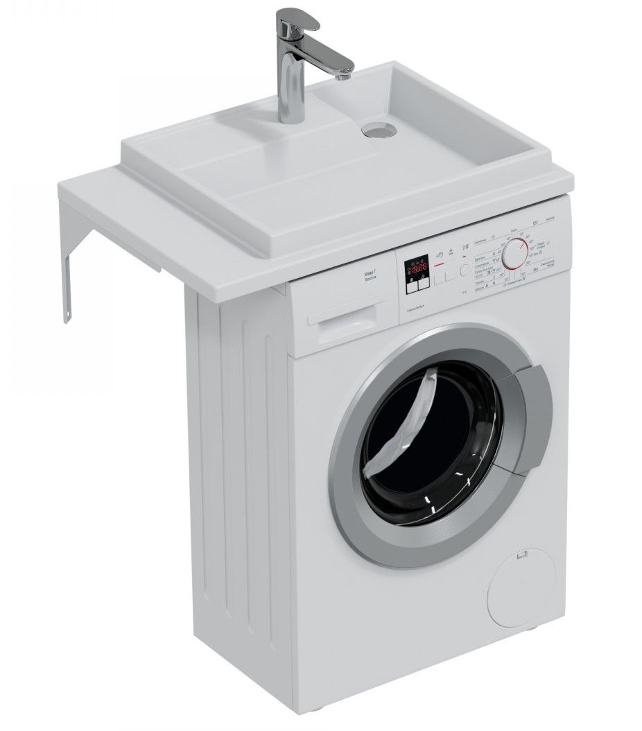 Также есть варианты раковин для стиральной машины со столешницей и тумбой.