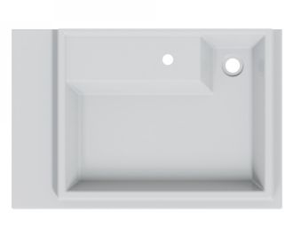 Одним из таких вариантов является раковина- столешница над стиральной машиной СаНта Юпитер 75. Изготовлена она из литьевого мрамора.