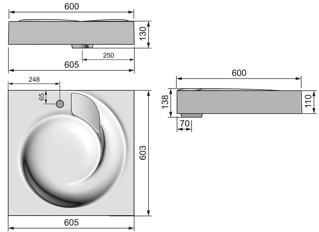 Раковина для установки над стиральной машинкой экономит площадь и позволяет установить ее там, где казалось бы, это невозможно. Киото 60*60 выполнена из износостойкого искусственного камня. Изделие элегантное, надежное и очень гигиеничное. Даже при минимальном уходе сохраняет безупречный цвет и внешний вид. Отверстие слива изысканно спрятано под съемной мыльницей. Сама чаша компактная, удобная и смотрится восхитительно, как воплощение непрерывного движения воды. По форме напоминает инь-янь, символ созидательного единства. Синтез визуальной привлекательности и отличного функционала.Основные характеристики: