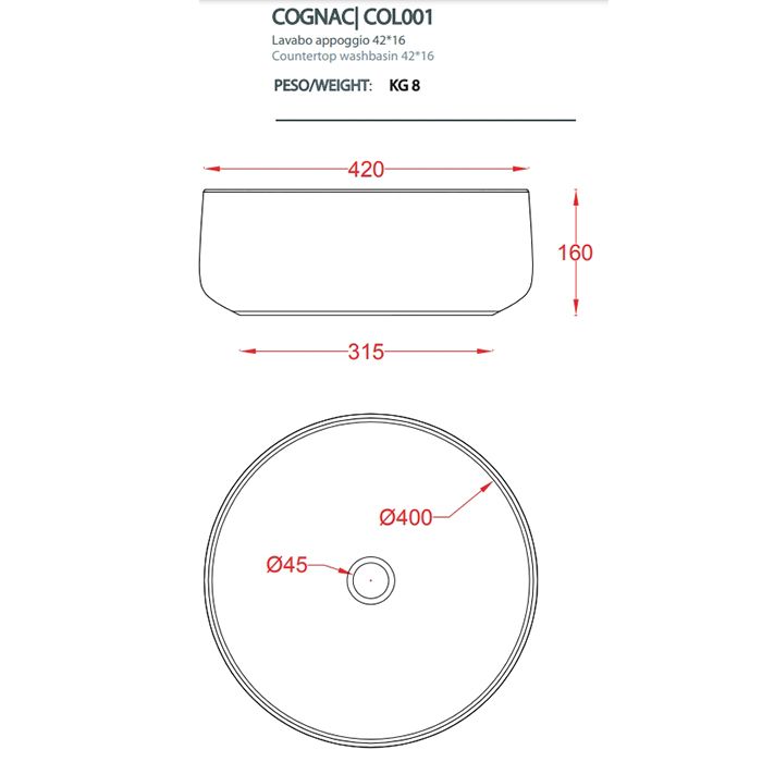 Раковина накладная ArtCeram Cognac COL001 01 00 белая 42 см