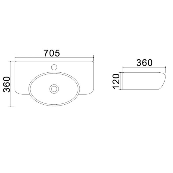 Раковина накладная Azario 70.5х36х12 фаянс, цвет Белый матовый (AZ4360T)