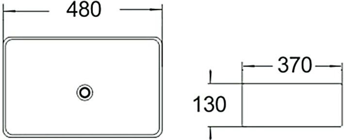 Раковина керамическая 48 х 37 х 13 см, накладная без перелива