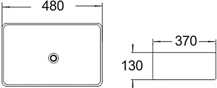 Раковина керамическая 48 х 37 х 13 см, накладная без перелива