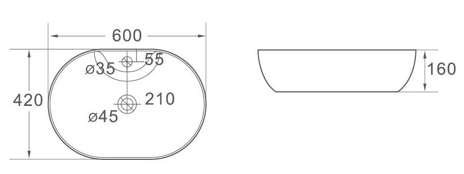• Форма: овальная.