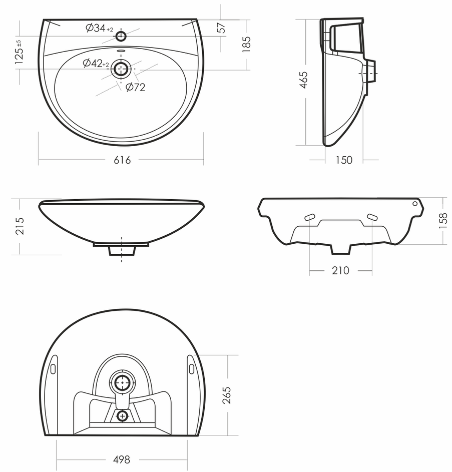 Размеры умывальника 616 x 465 x 215