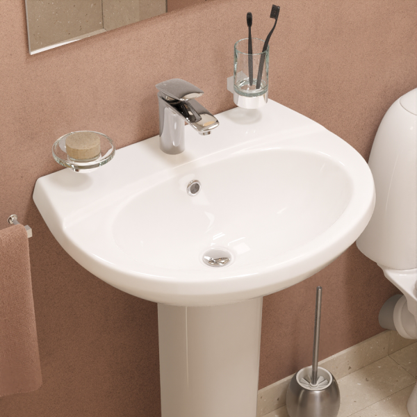 Сбалансированные формы отличают дизайн коллекции ВИКТОРИЯ. Умывальник ВИКТОРИЯ располагается на пьедестале, имеет базовый размер 60 сантиметров и функциональную широкую полочку, на которой можно расставить ванные принадлежности.
