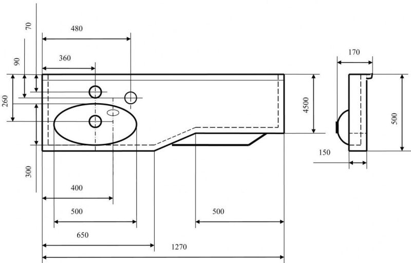 • Отверстия под смеситель: