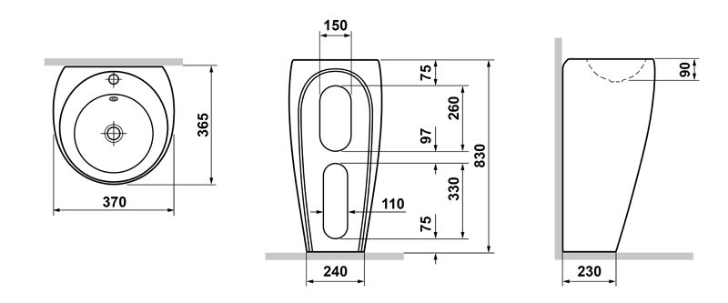 Цвет белый. Раковина с отверстием под смеситель; с отверстием перелива.