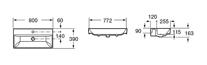 Размеры (ШхВхГ): 800х163х390 мм.