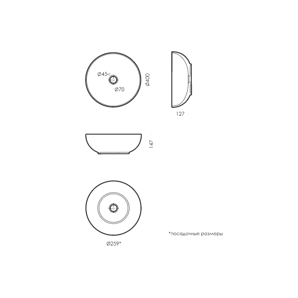 Раковина Sanita Luxe Art Сut WB.CT/Art/40-N.Slim/WHT.G/S1 40 см