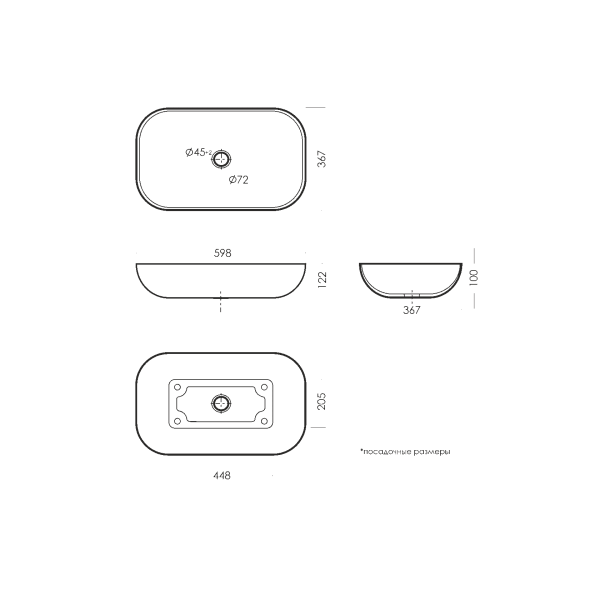 • Отверстия под смеситель: