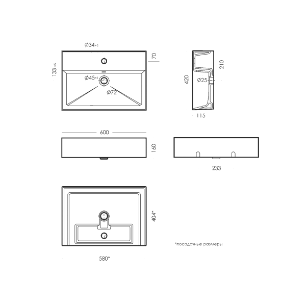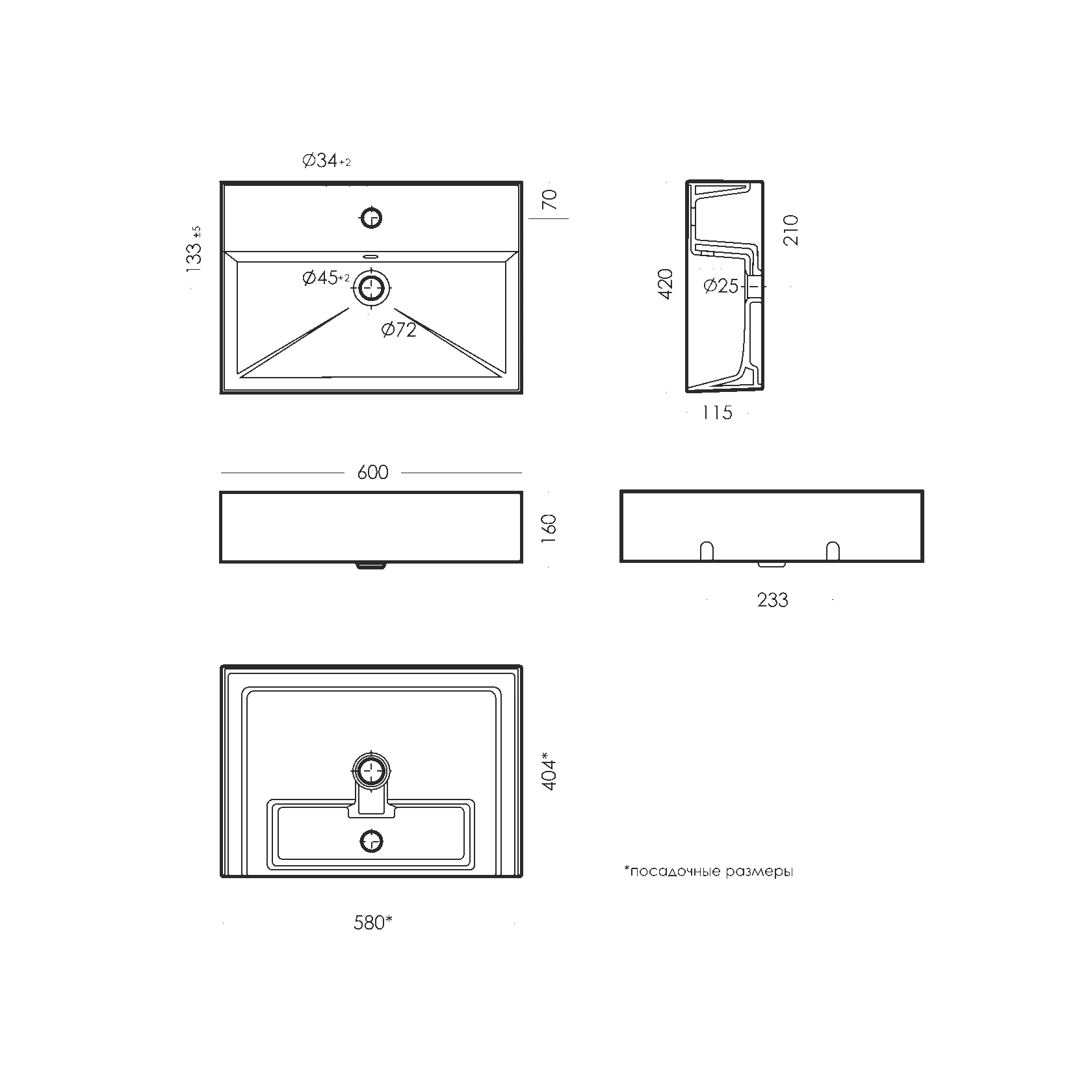Раковина Sanita Luxe Novel Slim WB.FN/Novel/60-C/WHT.G/S1 60 см