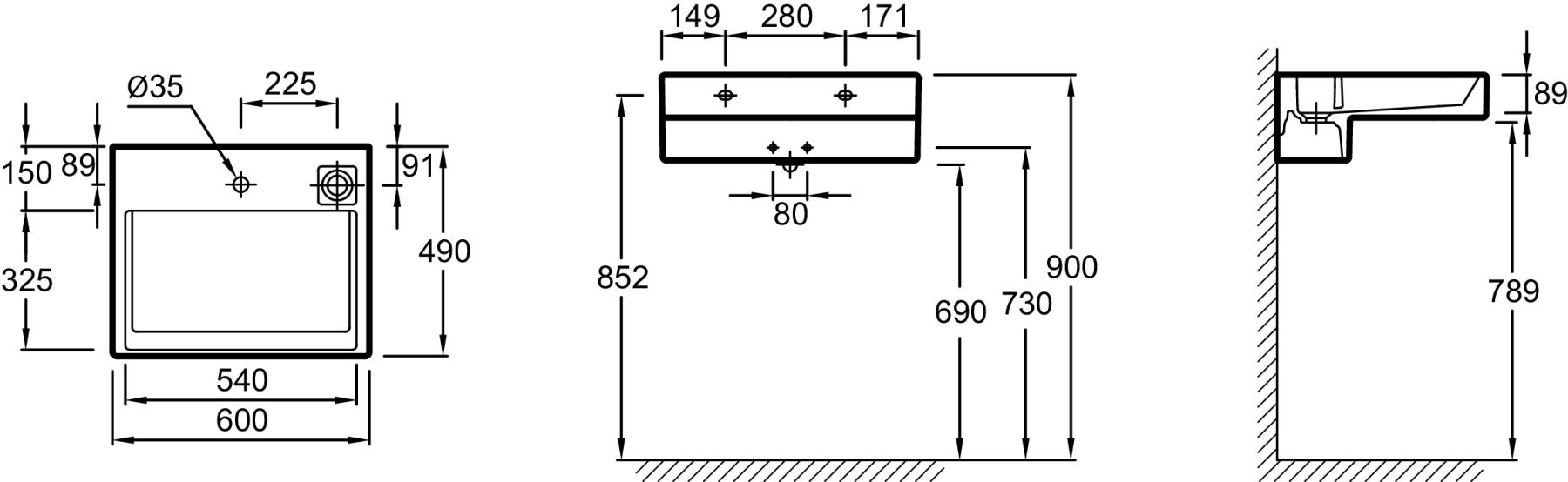 РАЗМЕТКА СВЕРЛЕНИЯ ОТВЕРСТИЯ ДЛЯ СМЕСИТЕЛЯ: С 1 отверстием для смесителя, 3 размечено