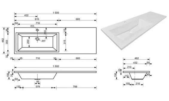Раковина для мебели Style Line Estetus Даллас 150х48,2 СС-00002435 левая со столешницей, материал искусственный камень.Расположение столешницы - справа.Слив-перелив и донный клапан приобретаются отдельно